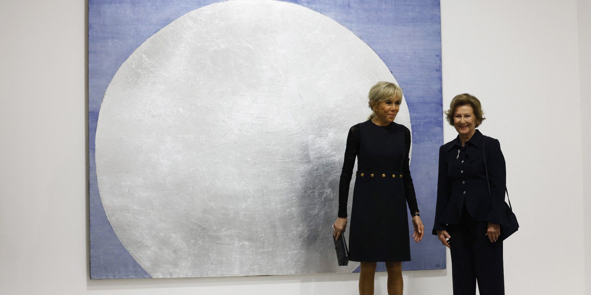 Préparez-vous donc à un bond dans le temps. Retour au 21 juillet 1969 : lorsque Neil Armstrong pose son pied sur la Lune . Dans son atelier parisien, l'artiste alterne entre la télévision et son chevalet. Ses toiles arborent des lunes argentées, des astres dorés, des planètes éclatées sur des fonds bleu-noir. "Il y a la conquête de l'espace et elle, elle peint des astres. C'est une vision qu'elle a et qui, à l'époque, est très difficile", explique Hélène Leroy, la conservatrice du Musée d'art moderne. "Dans les médias, on n'avait pas autant qu'aujourd'hui de photos de la navette spatiale, de Thomas Pesquet et tout ça...", s'amuse-t-elle.