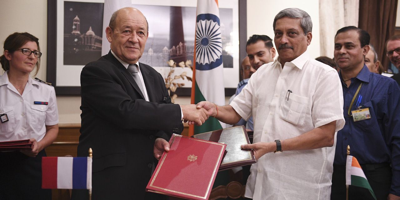 Sous les applaudissements. Le ministre de la Défense français Jean-Yves Le Drian et son homologue indien Manohar Parrikar ont paraphé à New Delhi l'accord intergouvernemental négocié pendant près d'un an et demi. Les deux officiels ont échangé une longue et chaleureuse poignée de mains. Des applaudissements nourris ont éclaté dans la délégation française à l'issue de la signature.