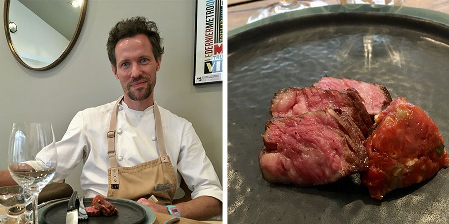 un morceau épais d’entrecôte de bœuf de Bazas (200 grammes minimum)