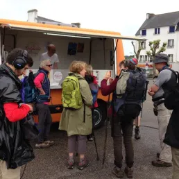 Entre Quimper et la pointe du Raz. Sur le GR34…. 2000 km de chemin aménagés pour les randonneurs du Mont Saint Michel à Saint Nazaire. L’étape du jour, c’est à Audierne, petit port de pêche. Nous marchons en compagnie de Marie, une guide passionnée d’histoire et profondément amoureuse de sa région… du patrimoine et de sa gastronomie. Marie accompagne un groupe de neuf marcheurs, des retraités férus de randonnées… quelques soient les conditions météo…