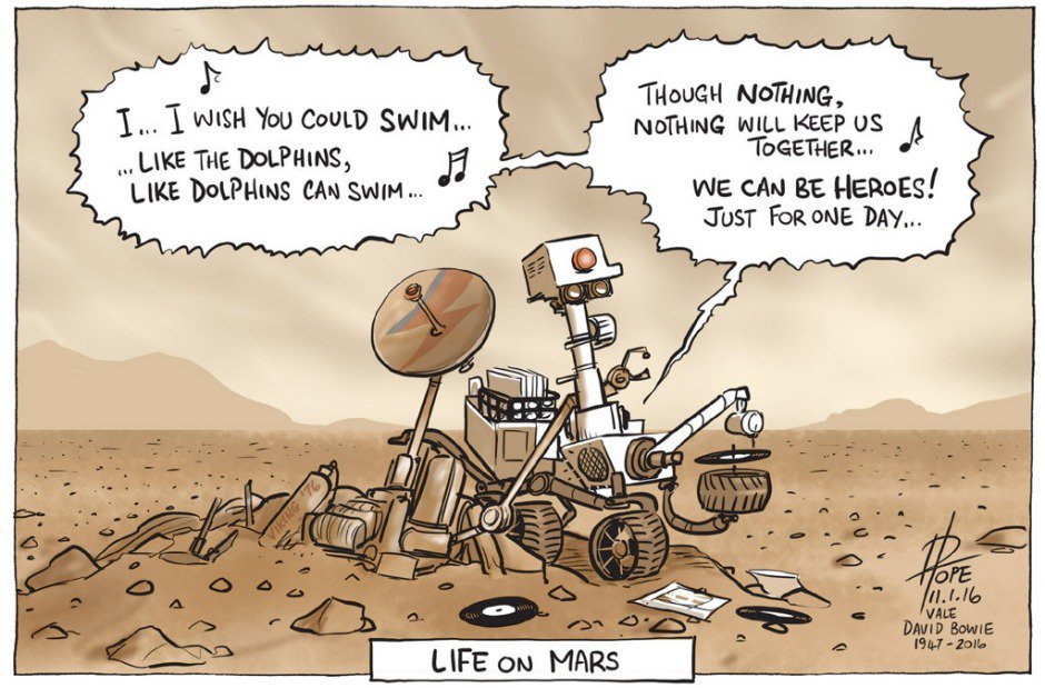 - Tout autour de la planète et jusque dans l’espace, les dessinateurs ont rendu hommage à David Bowie disparu dimanche dernier.