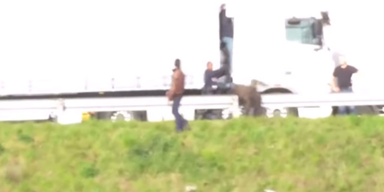 Frappés et projetés par-dessus des rambardes. La scène se déroule le mardi 5 mai, au petit matin, vers 8 heures. Comme chaque jour, des bouchons se forment sur la rocade portuaire. Et les camions, qui attendent leur tour pour traverser la Manche, sont immobilisés sur la voie de droite, en bordure de la N216. C’est là que les forces de l’ordre interviennent, mobilisés pour déloger les migrants qui sont venus se cacher dans les remorques des camions, espérant regagner la Grande-Bretagne.