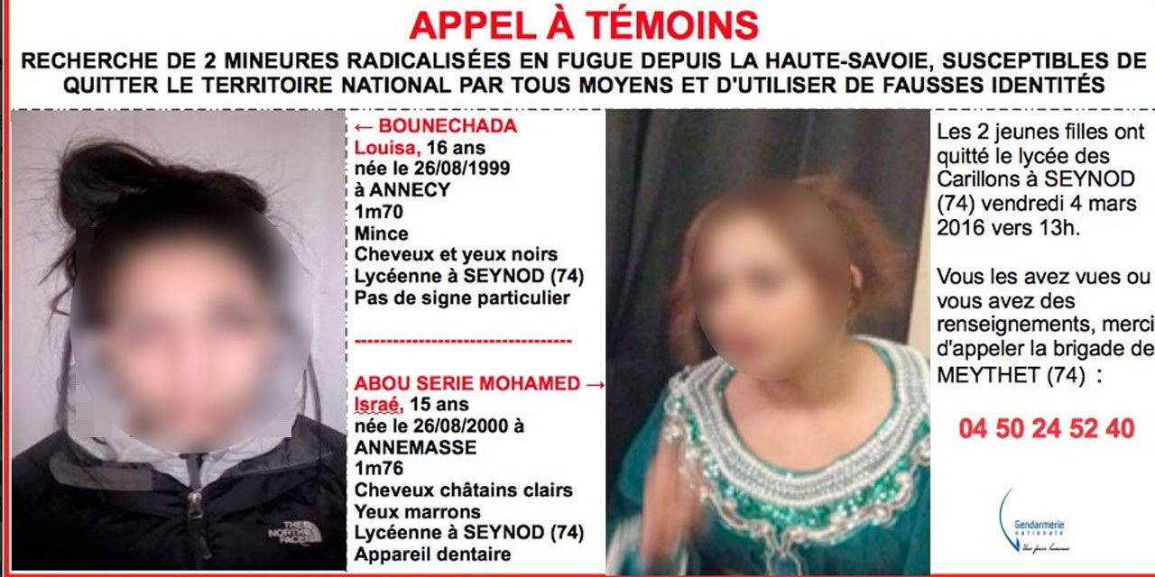 Disparues depuis vendredi. La disparition des deux adolescentes avait été signalée vendredi soir à la gendarmerie. Le parquet d'Annecy soupçonnait les deux mineures "d'être parties ou de vouloir partir en Syrie" et évoquait leur "projet de prendre un train pour Paris depuis Chambéry". Selon la même source, Israé était "déjà suivie pour radicalisation" et "avait été placée en foyer", avec "interdiction de sortie du territoire". Pareille mesure avait été délivrée samedi pour Louisa.