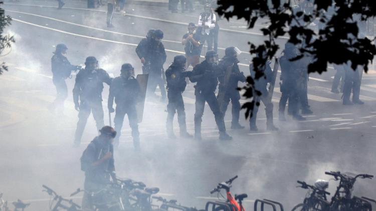 "C'est une qualification criminelle, on n'est pas dans un état de légitime défense ou de nécessité, j'en veux pour preuve les images qu'on a et le fait qu'il n'ait pas été interpellé par la suite", a précisé Me Simon. Sur des clichés circulant sur les réseaux sociaux et des vidéos diffusées notamment par BFMTV et AB7 Média, on voit un policier donner un coup de matraque à l'entrejambe d'un homme au sol, qui tient un appareil photo dans une main, puis repartir.