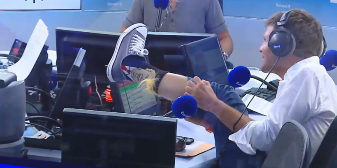 L'animateur de La matinale d'Europe 1 a exhibé ses chaussettes à l'effigie du candidat républicain au moment de passer l'antenne à Thomas Joubert, jeudi matin.