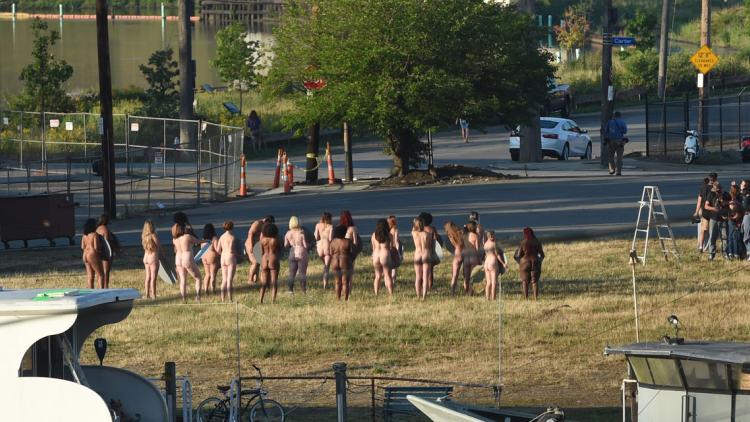 Le photographe américain Spencer Tunick a tenté de mélanger dimanche nudité et politique avec une oeuvre rassemblant 100 femmes nues, non loin de la convention républicaine à Cleveland.