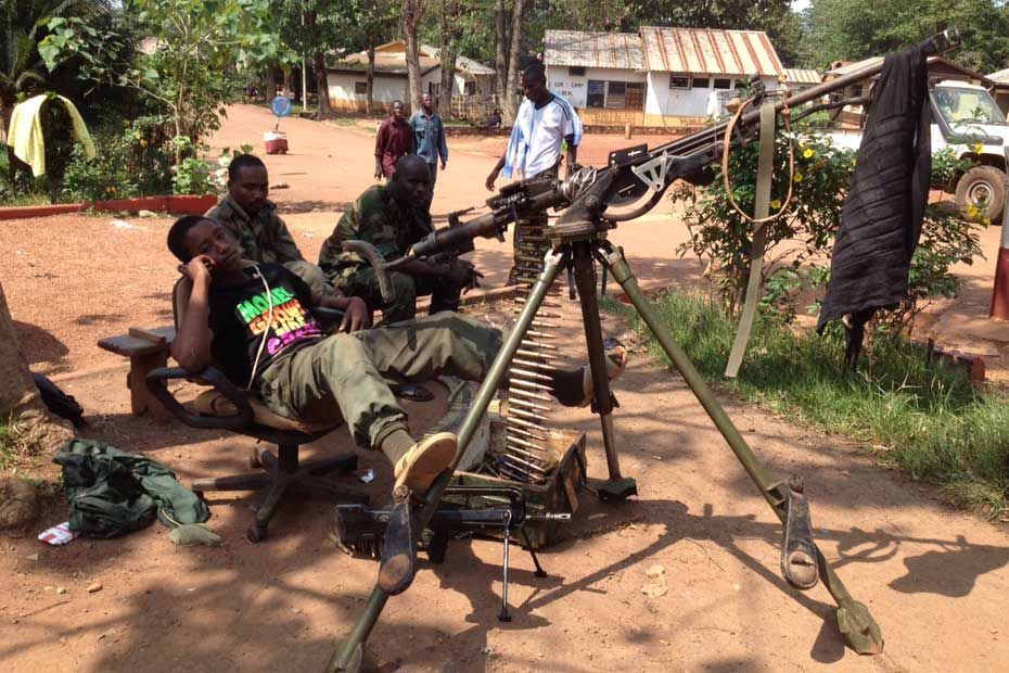 Ils ne se font plus appeler Séléka mais "armée nationale". Pourtant, il y a presque autant d'uniformes différents que d'hommes, avec des couleurs verte, marron, sable, kaki… Il s'agit en fait d'une armée de miliciens qui tenaient la ville il y a quelques jours encore, avant l'arrivée des Français. Désormais, s'ils sortent avec leurs armes, ils s'exposent aux contrôles des patrouilles françaises.