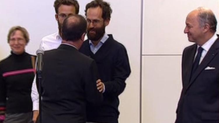 Les sept membres de la famille Moulin-Fournier, libérés vendredi, ont été accueillis par François Hollande à Orly.