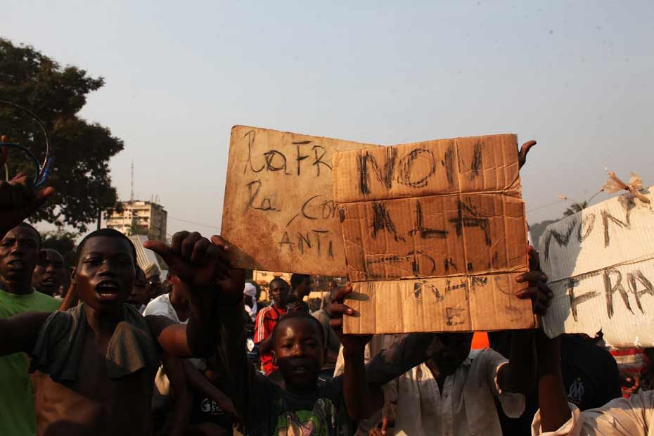 Dans l'après-midi, les manifestants se sont rassemblés dans le centre-ville de la capitale centrafricaine et ont ensuite marché pacifiquement sur une grande avenue vers le quartier musulman PK5, a constaté un vidéaste de l'AFP. La marche s'est déroulée sans incident."Non à la France", "Hollande criminel!", scandaient notamment les protestataires, qui entendaient dénoncer "la partialité" des militaires français déployés depuis début décembre en République centrafricaine (RCA), où ils tentent de mettre fin à des violences interreligieuses à grande échelle.