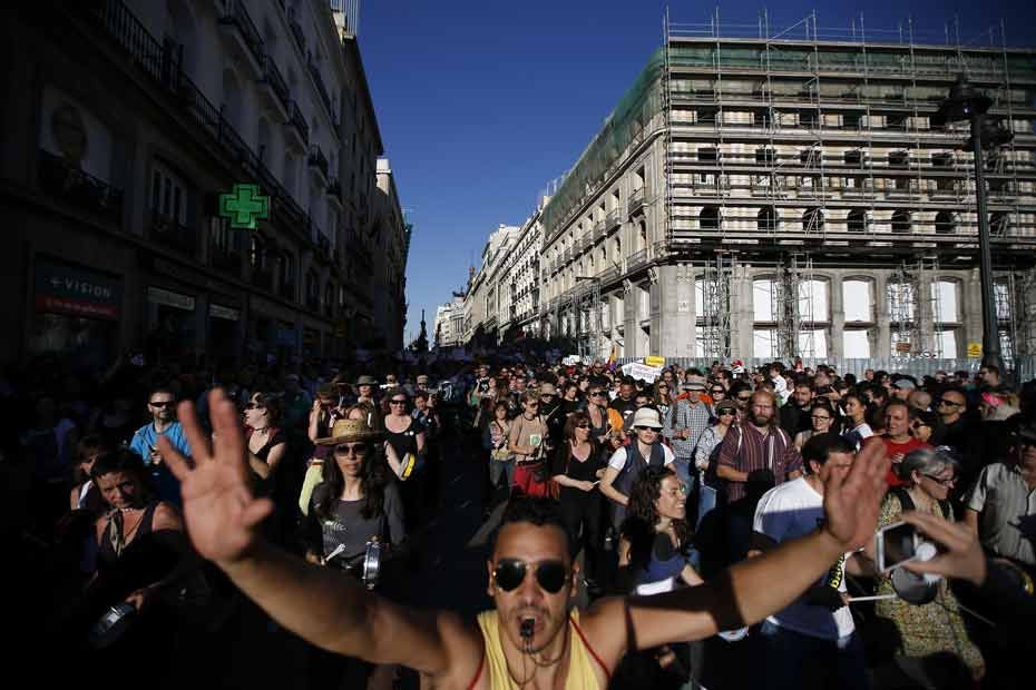 A Madrid, les manifestants ont convergé vers la Puerta del Sol, la place emblématique du mouvement. C’est là que les premiers manifestants avaient installé leur campement, en mai 2011.