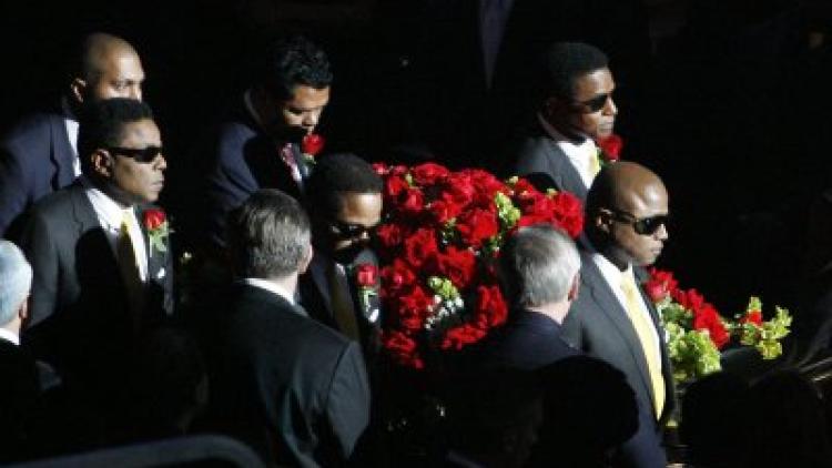 18h23 : Le cercueil, recouvert d'un lit de fleurs rouges, a été placé dans un corbillard, dès la fin de la cérémonie privée qui a duré une heure environ au cimetière de Forest Lawn, à Hollywood. Selon les sites internet spécialisés dans le spectacle TMZ.com et Access Hollywood, le cercueil de Michael Jackson, doré à l'or fin, est estimé à 25.000 dollars. Ce modèle, "Le Prométhéen", a été commandé à l'entreprise qui avait déjà fourni le cercueil de James Brown en 2006.