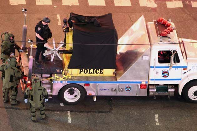 Un homme blanc, âgé d'une quarantaine d'années, qui a retiré à la hâte une chemise noire à proximité du véhicule piégé a été repéré. Il pourrait s’agir d’un suspect potentiel, selon les autorités. Les spécialistes de l’explosif sont également penchés sur l’engin retrouvé dans le coffre du 4x4, contenant du propane, de l'essence et des feux d'artifice.