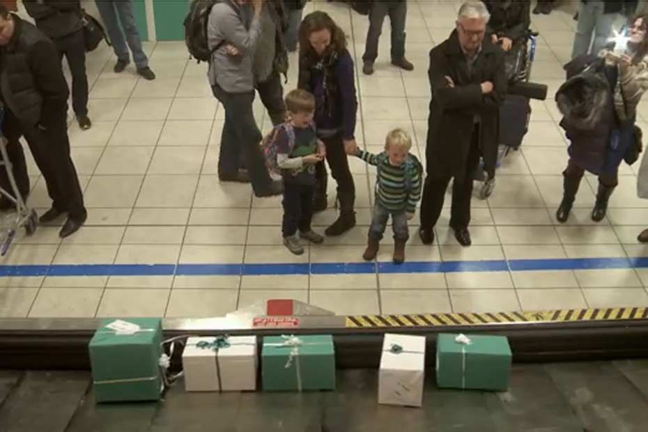 Le coup de com' est réussi. La compagnie canadienne WestJet a décidé de jouer les pères Noël pour les passagers d'un vol, une surprise filmée qui a été vue 19 millions de fois sur Youtube. A l'aéroport de Toronto, les petits chanceux ont conversé via Skype avec le père Noël, qui leur a demandé ce qu'ils voulaient pour Noël. A l'arrivée à Hamilton, dans l'Ontario, ils ont eu la surprise de recevoir... exactement ce qu'ils avaient demandé. Au lieu des bagages des passagers, ce sont en effet les cadeaux qui sont apparus sur le tapis roulant.