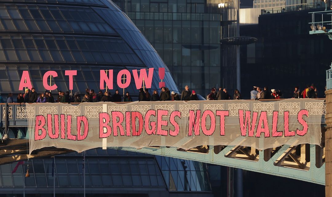 #bridgesnotwalls ❤️ one of over 150 banner drops of love and solidarity today worldwide! pic.twitter.com/3tEck0O32K