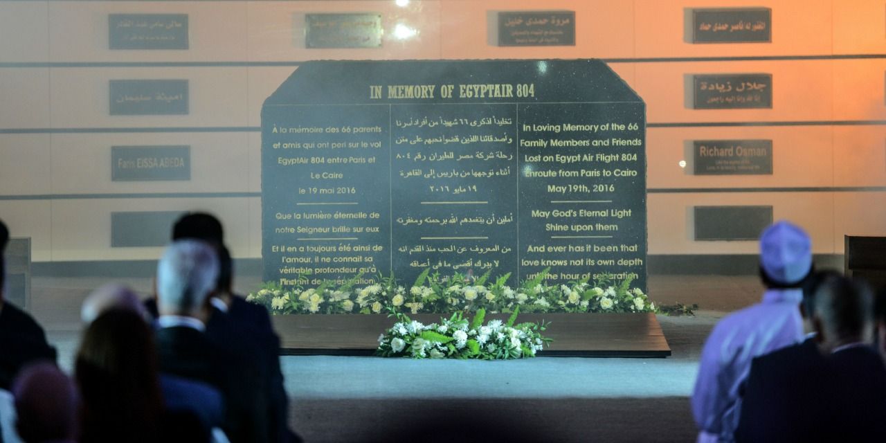 Une plaque commémorative est dévoilée avec le nom des 66 victimes du crash #MS804 @EGYPTAIR pic.twitter.com/sBQy3a5xUX