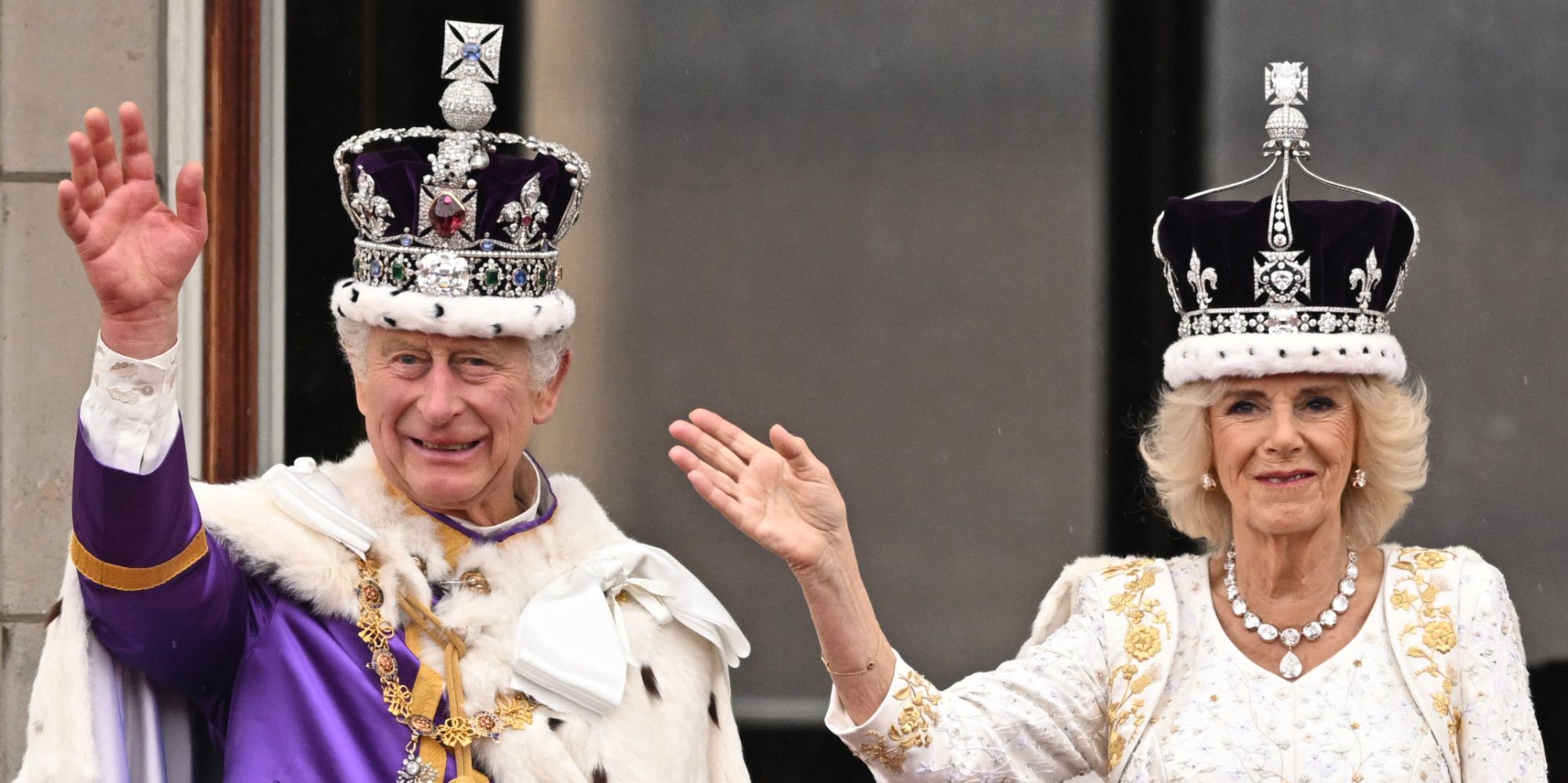 Comme lors de chaque évènement majeur, le roi et la reine se sont rendus sur le balcon de Buckingham pour saluer la foule qui s'est réunie devant le palais. Souriants, Charles III et Camilla ont rapidement été rejoints par les autres membres de la famille royale, notamment le prince William, la princesse Kate et leurs trois enfants. À noter tout de même l'absence très remarquée du prince Harry sur le balcon, seuls les membres actifs de la famille royale étant autorisés à s'y rendre. Malgré la pluie, le défilé aérien a également pu avoir lieu, marquant la fin de cette journée historique.