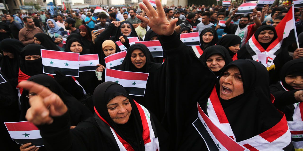 "Cessez de détruire la Syrie comme vous avez détruit notre pays", a scandé une foule de plusieurs milliers de personnes réunies dans le centre de Bagdad.