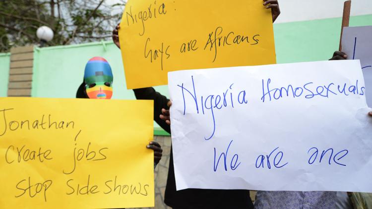 Des arrestations régulières au sein de la communauté LGBT. L'ex-président nigérian Goodluck Jonathan a fait voter en 2014 une loi qui bannit non seulement le mariage homosexuel, mais aussi la "cohabitation entre même sexe", et condamne de 10 à 14 ans de prison tout témoignage public de "relations amoureuses entre personnes de même sexe". Bien que personne n'ait été condamnée pour son homosexualité, les arrestations régulières entretiennent un climat de peur au sein de la communauté LGBT (lesbiennes, gays, bisexuels et transgenres), dans ce pays très religieux et conservateur.