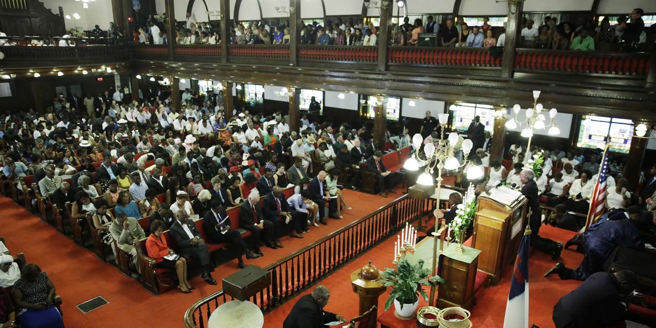 L'église de Charleston a ouvert ses portes pour un premier service religieux depuis la tuerie de mercredi.