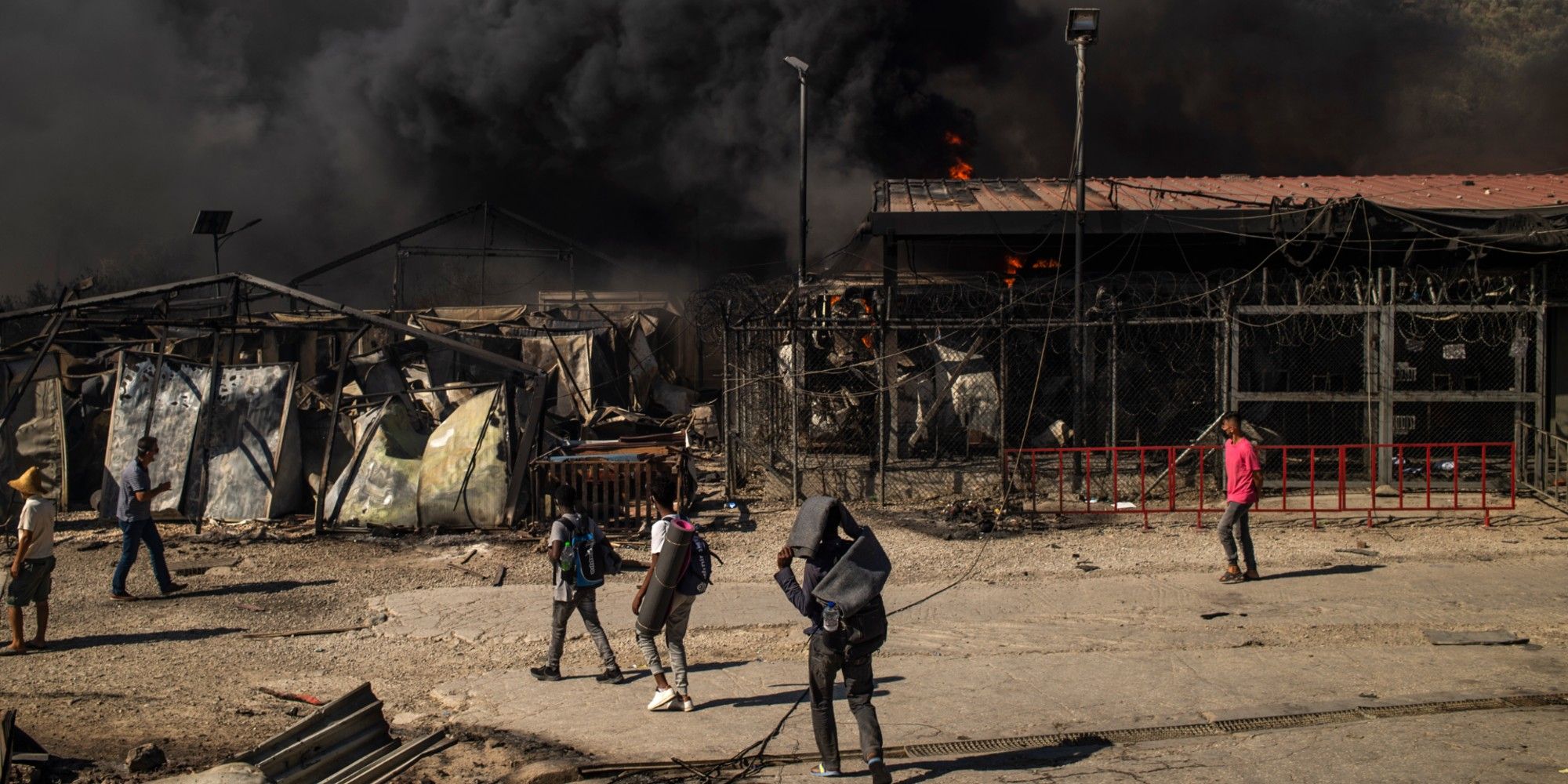 Mercredi, hommes, femmes et enfants sont sortis, paniqués, des tentes et des conteneurs pour se réfugier dans les champs d'oliviers environnants, alors que l'incendie faisait rage dans le camp surpeuplé. L'incendie s'est déclaré quelques heures après que les autorités ont annoncé que 35 personnes avaient été testées positives au Covid-19. Plusieurs heures après le début de l'incendie, une fumée noire continuait à s'élever du camp, qui héberge près de 12.700 demandeurs d'asile. Des dizaines de personnes erraient parmi les conteneurs calcinés, certains retirant des affaires, d'autres prenant des photos à l'aide de leurs téléphone portables.