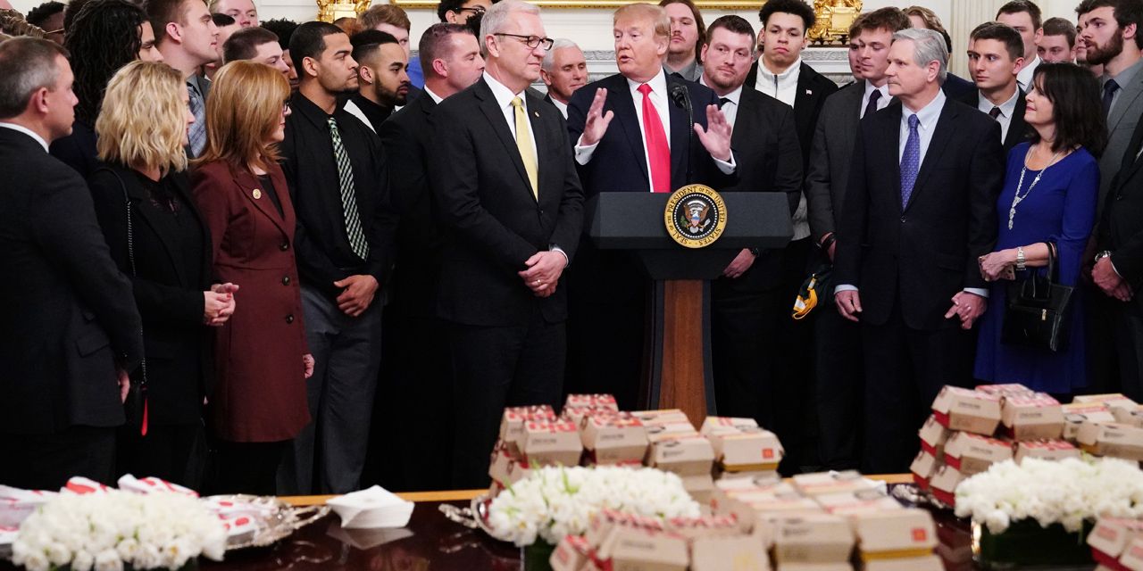 Trump reçoit des athlètes à la Maison Blanche avec des burgers et du poulet frit