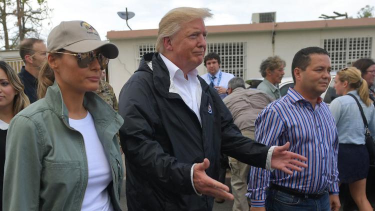 En visite sur l'île deux semaines après le passage de l'ouragan Maria, le président américain a multiplié les promesses financières, afin d'éteindre plusieurs polémiques.