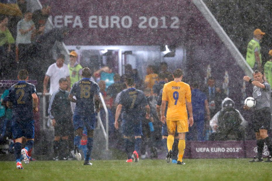 La seconde rencontre des Bleus, contre l'Ukraine, a réuni 10,5 millions de téléspectateurs en moyenne, soit 46,6% du public selon les chiffres de Médiamétrie. Le match qui devait débuter à 18 heures sur M6 a duré jusque 20h45 en raison d'interruptions liées aux intempéries.