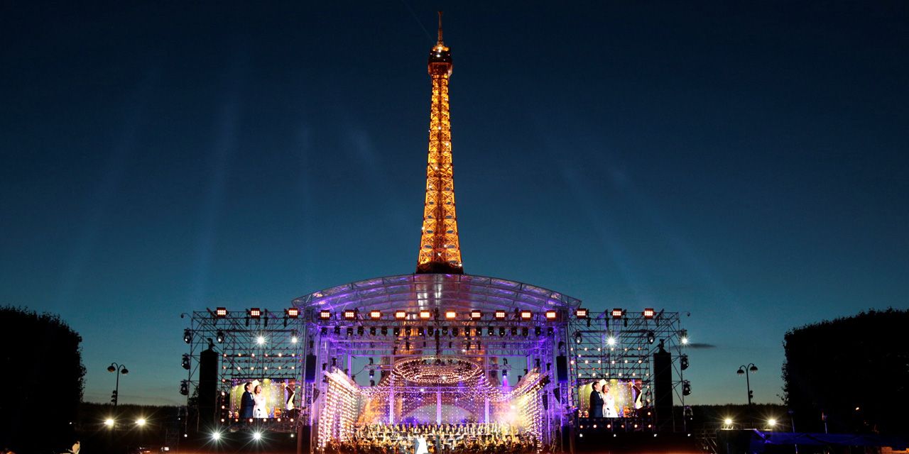 Le concert du 14 juillet, au pied de la Tour Eiffel, a rassemblé le plus grand nombre de téléspectateurs, samedi soir, sur France 2. TF1 arrive deuxième avec son Bal du 14 juillet, animé par Nikos Aliagas.