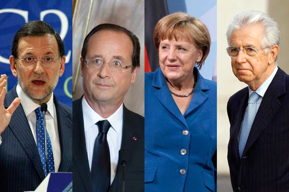 Hollande, Merkel et Rajoy ont rendez-vous vendredi chez Monti pour tenter de s'accorder.
