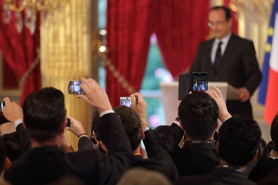 Hollande leur fait les yeux doux, eux préfèrent le prendre en photo. Le président de la République a reçu mardi midi à l'Elysée une quarantaine de grands patrons chinois du China Entrepreneurs Club (CEC). Ceux-ci représentent 245 milliards d'euros de chiffre d'affaires, soit 4% du PIB chinois.