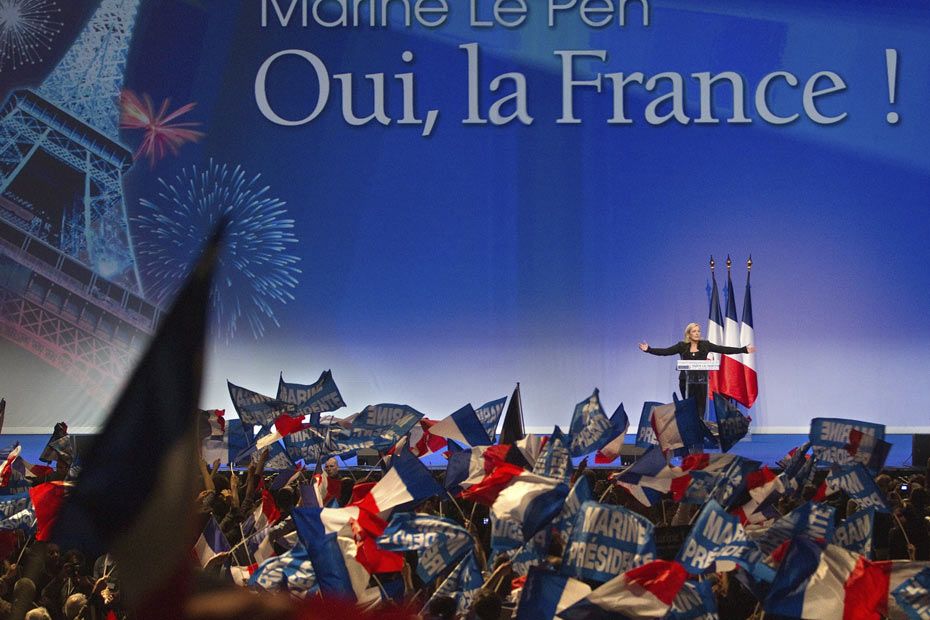 Les rames de métro qui mènent au Zénith de Paris sont bondées. Quelques cars de CRS, des militaires armés et un cordon de sécurité encadrent la foule qui se dirige tranquillement vers le cœur de la Cité des sciences. Pas de concert de rock mardi soir. Non, c'est bien Marine Le Pen qui est sur scène. Pour ce dernier grand raout, les militants ont répondu présents, à 5 jours du premier tour. Deux noms sont sur toutes les lèvres, celui de la candidate FN, bien sûr, et... celui de Jean-Luc Mélenchon.