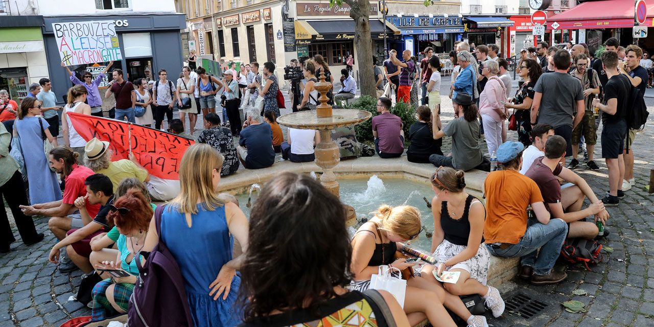 Selon l'un des organisateurs, Nicolas Framont, militant LFI, l'évènement était au départ "une blague qui a pris", avant de se transformer en un rassemblement à l'endroit même où l'affaire Benalla a commencé, sur la place de la Contrescarpe, dans le centre de Paris.