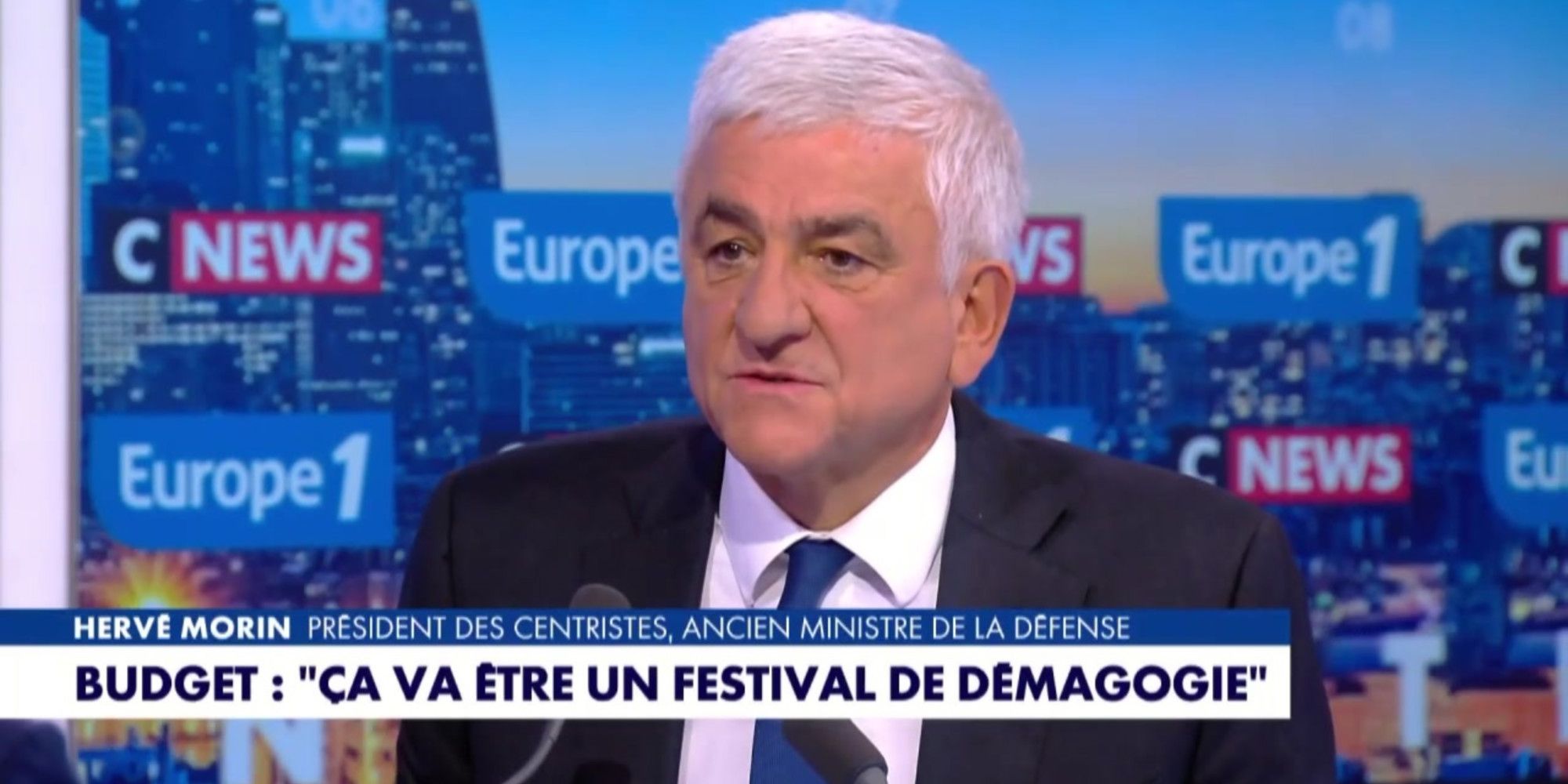 Au micro de Sonia Mabrouk, Hervé Morin, président des Centristes et ancien ministre de la Défense, ne mâche pas ses mots concernant le vote du budget 2026 qui commence lundi à l'Assemblée nationale. "Cela va être un festival d'idées démagogiques", dénonce-t-il au micro d'Europe 1.