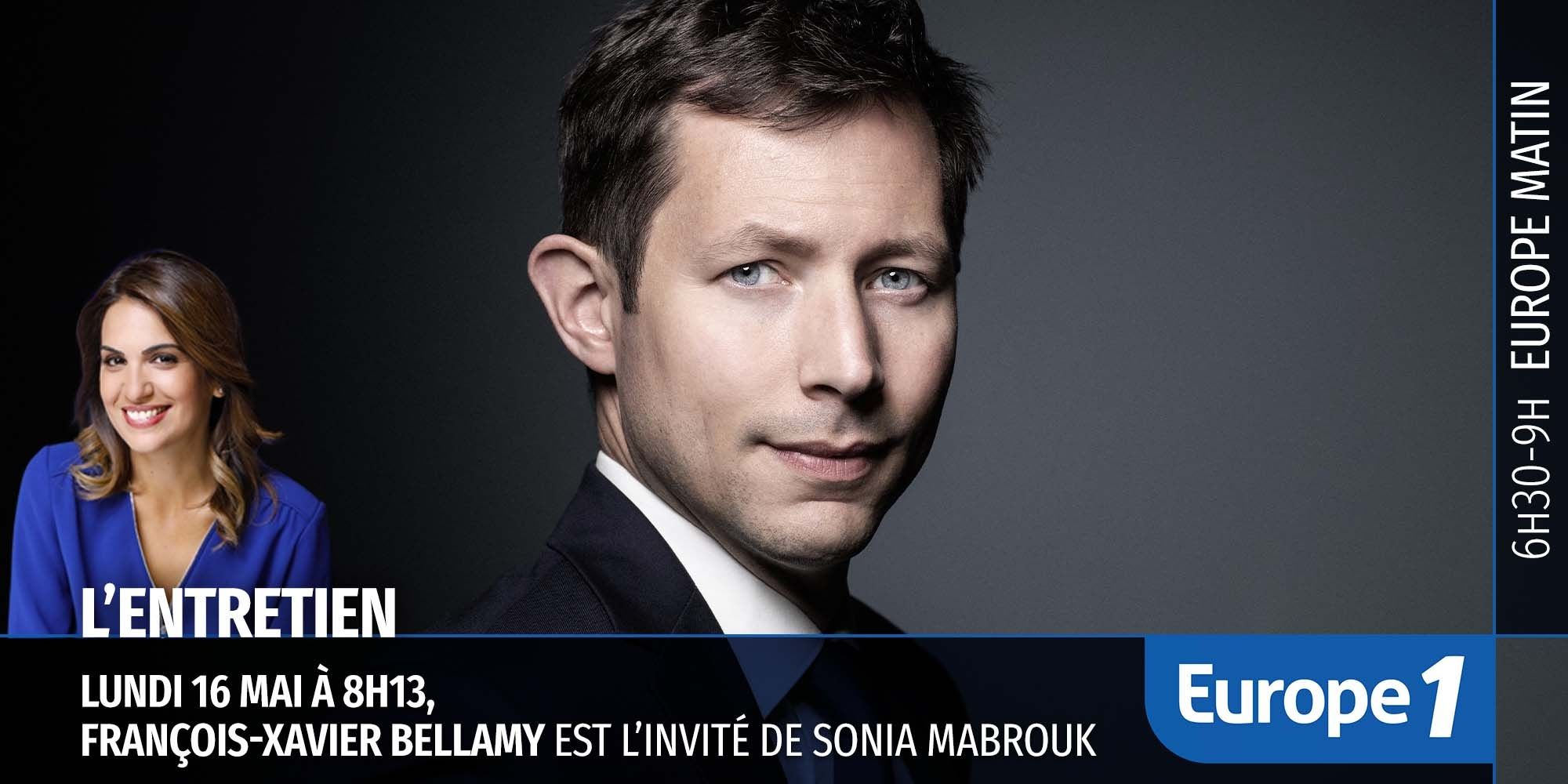 Du lundi au jeudi à 8h13, Sonia Mabrouk reçoit dans la matinale d'Europe 1 un invité d’actualité. Lundi, le député européen des Républicains, François-Xavier Bellamy, répond à ses questions.