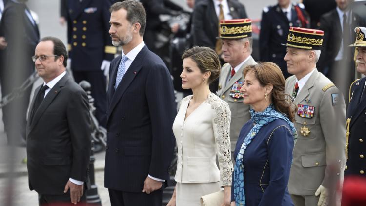 Deux mois après l'annulation d'une première visite d'Etat en raison du crash de l'Airbus de la Germanwings , le roi et la reine d'Espagne, Felipe VI et Letizia, sont de retour en France. Il s'agit de la première visite d'Etat effectuée par le souverain espagnol, qui a succédé à son père Juan Carlos après son abdication en juin 2014. Et pour cette première, les photographes se sont régalés de la présence de Ségolène Royal, venue accueillir le couple espagnol avec François Hollande. Une présence uniquement protocolaire : en l'absence du Manuel Valls et de Laurent Fabius, la ministre de l'Ecologie est le troisième personnage du gouvernement.