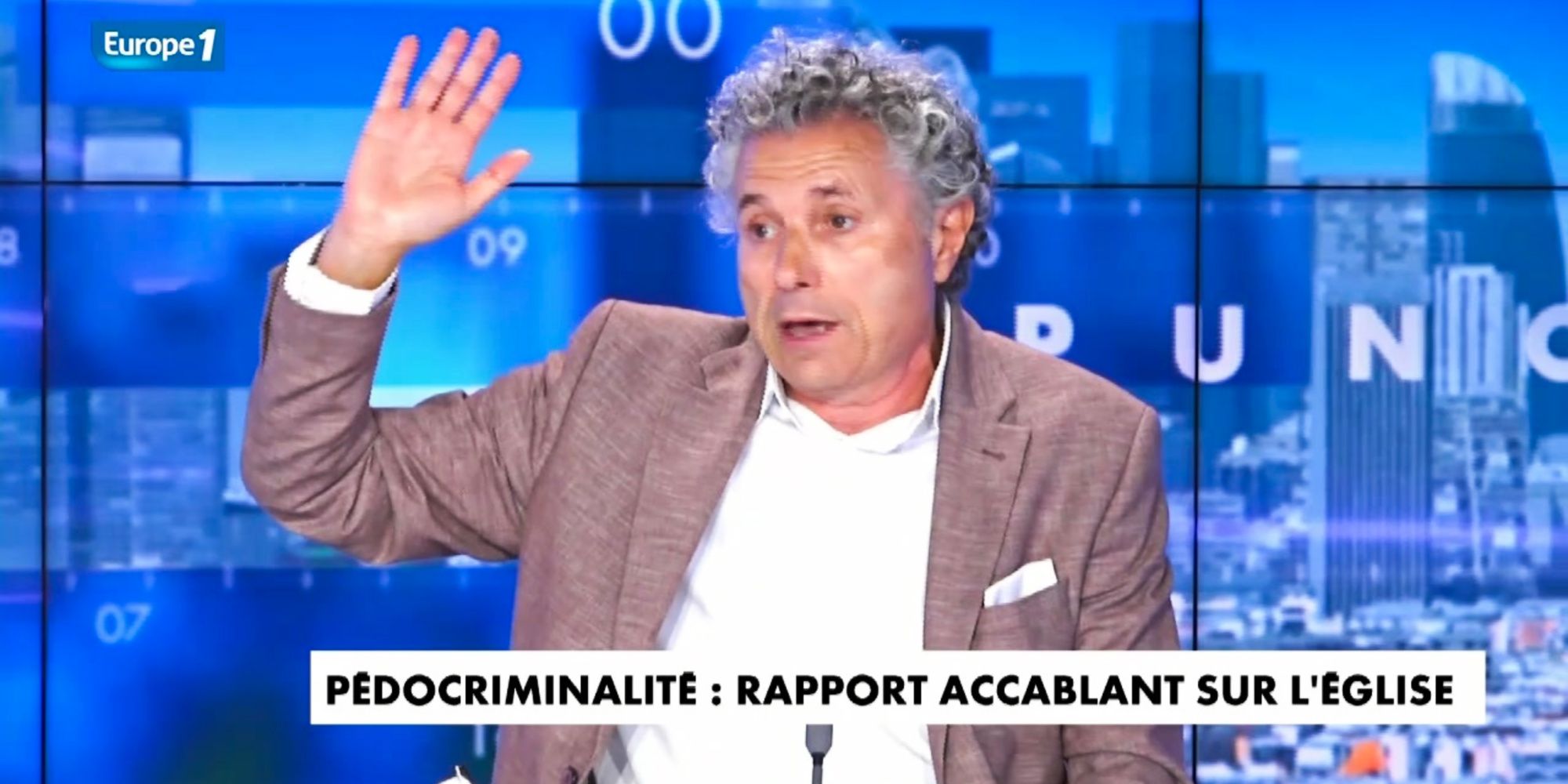 "Ce n'est pas uniquement dans le milieu de l'Église que ça se passait." Si Jean-Marc Sauvé a révélé mardi qu'environ 330.000 enfants ont été victimes de pédocriminalité , selon les conclusions de son rapport, Gilles-William Goldnadel affirme sur Europe 1 et CNews qu'il est dangereux de se focaliser uniquement sur le milieu religieux et catholique en particulier. L'avocat insiste sur la nécessité, selon lui, de dénoncer les crimes visant les enfants dans toutes les sphères de la vie publique, défend-il dans Punchline, mardi.