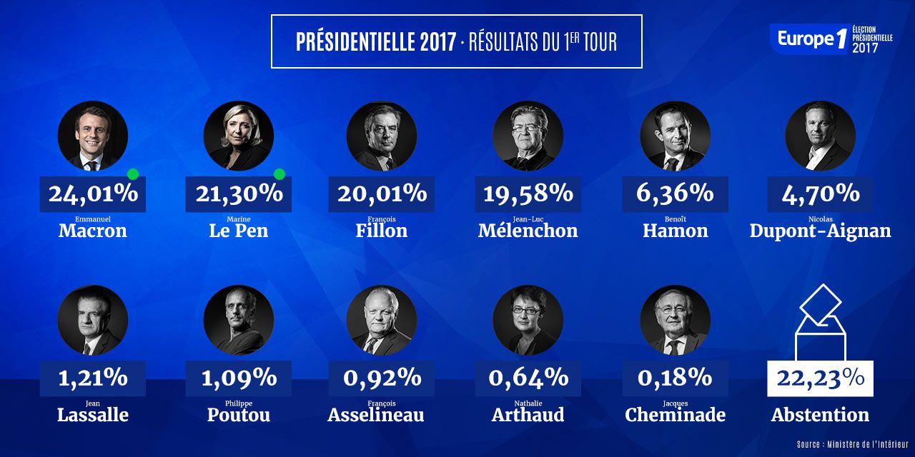 Le candidat d'En Marche! est en tête de ce premier tour, avec plus de 23% des voix.