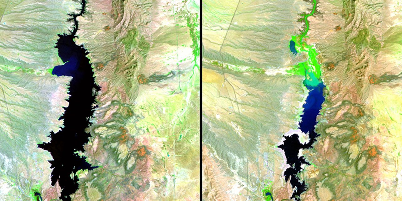 Glaciers, lacs, fleuves... Les photographies prises par des satellites ou au ras-du-sol montrent par exemple comment des glaciers reculent . Le Qori Kalis au Pérou, entre autres, est comparé dans deux clichés , un pris en 1978 et un autre datant de 2011. Dans ce dernier, la langue de glace a reculé, laissant place à un lac. La banque d'images passe ainsi en revue les conséquences du réchauffement climatique qui s’accélère depuis la révolution industrielle du 19e siècle : lacs qui s'assèchent, fleuves dont le débit se rétrécit, littoral qui se fait grignoter par la mer.
