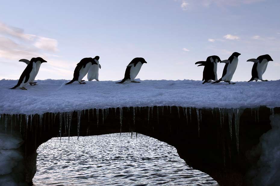 Pas si bêtes. Le pingouin empereur règne en maître sur les banquises de l’Antarctique. Il doit cependant faire face à un problème de taille, le réchauffement climatique. Bien que le nombre de ces animaux continue de progresser grâce à la fonte des glaciers qui lui libère de l’espace, les côtes, elles, commencent à être avalées par la mer. Une étude menée par la British Antartic Survey grâce à des observations satellites prouve que les colonies de pingouins, habituées à venir s’installer sur la banquise, se sont déplacées sur les bandes de glaces qui flottent tout autour du continent. L’un des auteurs de l’étude, Peter Fretwell, observe que "ces oiseaux avaient l’habitude de s’installer en boprd de mer pour avoir un accès à la mer où ils se procurent leur nourriture. Les observations satellites montrent que de 2008 à 2010 la glace était assez épaisse pour supporter l’installation des colonies, ce n’est plus le cas depuis 2011."