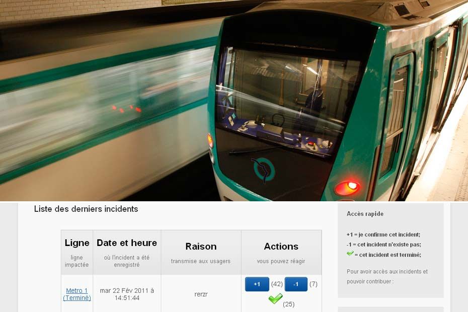 Conçu sur le modèle d’un site participatif, Incidents-RATP.com doit permettre “aux usagers de s'aider entre eux en temps réel“. Une rame de métro est à l’arrêt sur la ligne 1 suite à un incident voyageur ? Un usager présent sur place peut alors donner l’information sur le site, pour permettre à d’autres de ne pas se retrouver à leur tour bloqués.