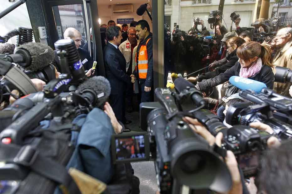 Le président-candidat a recueilli les doléances des salariés de PSA. "Je me suis engagé auprès d'eux à obtenir de la direction de PSA une réunion tripartite la semaine prochaine" avec PSA, les syndicats et le ministre de l'Industrie Eric Besson, a indiqué Nicolas Sarkozy
