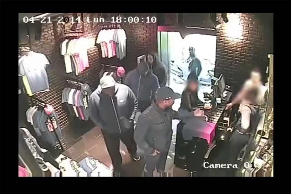 Puis, tout va très vite : le rappeur assène un premier coup au jeune homme avant d'enchaîner. Un second vendeur qui vient en aide à son collègue est lui aussi violemment pris à partie par un cinquième homme, casqué, qui surgit comme une furie dans l'échoppe. Coups de poings, coups de pieds, caisse enregistreuse utilisée comme projectile, vitrine qui vole en éclat, le pugilat dure 22 longues secondes. Au sol, le jeune vendeur est roué de coups et laissé inanimé sous les yeux d'une jeune cliente, perdue au milieu du règlement de comptes.