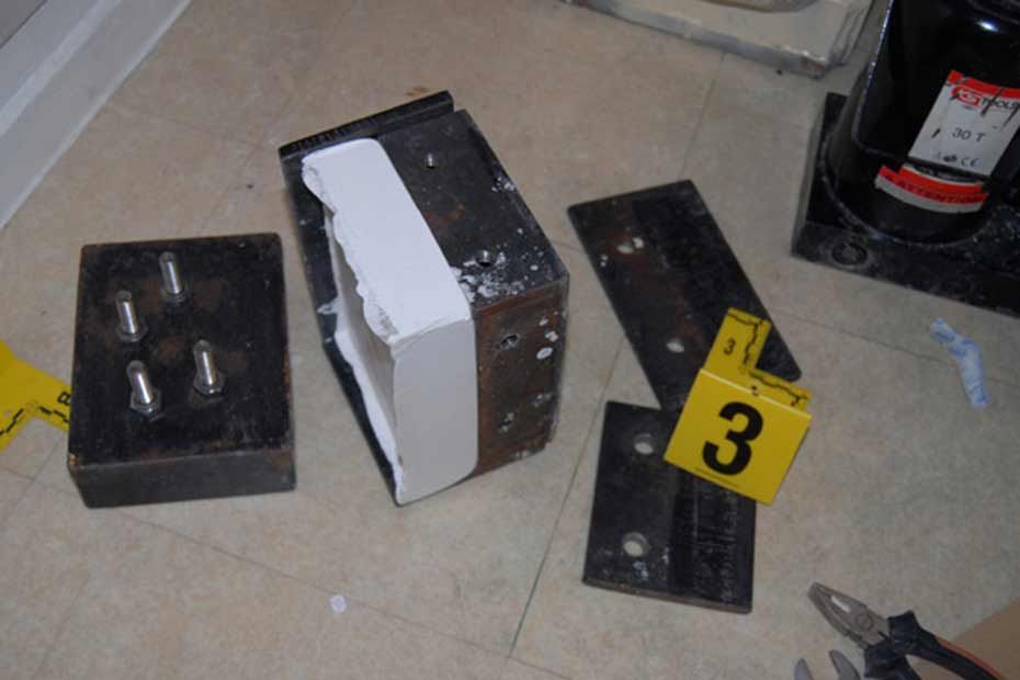 Les malfaiteurs confectionnaient leur drogue dans un petit deux-pièces, refait à neuf, parfaitement aménagé, avec une porte blindée. Les gendarmes ont découvert dans ce studio des combinaisons, des masques, des gants et du matériel pour reconditionner la cocaïne coupée en pains solides d'un kilo.