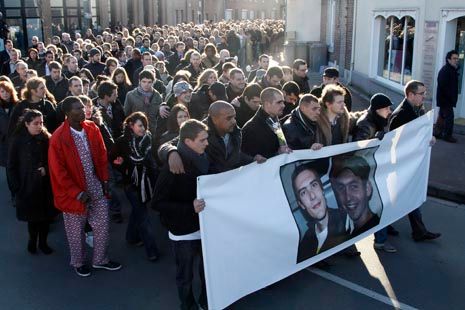 Le silence qui a régné sur le cortège était impressionnant. Il a d'autant tranché avec la "minute de bruit" qu'ont réclamé les mais d'Antoine et Vincent à l'issue d'une marche organisée en leur souvenir. Près de 3.000 personnes ont défilé en mémoire des deux jeunes Français tués après leur enlèvement au Niger, dimanche à Linselles, leur commune d'origine, à Linselles, près de Lille. La marche s’est achevée devant l'église Notre-Dame de Linselles, là-même où doivent avoir lieu lundi les obsèques des deux jeunes hommes, en présence du président Nicolas Sarkozy.