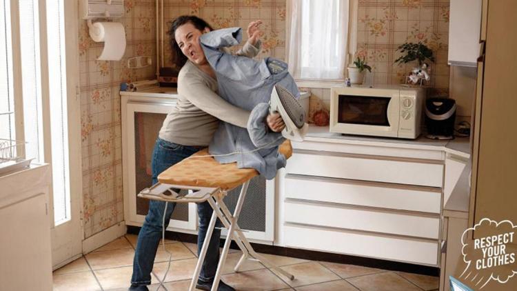 L’horreur des images, l’effroi du slogan. Sur ces photos, qui n'ont été ni "demandées ni validées par la marque Tefal " et ont été publiées "par erreur" sur un site, selon Publicis Conseil, les femmes se retrouvent dans diverses positions, le visage grimaçant de souffrance, attaquées par un fer à repasser brandi par une chemise d'homme. On peut également apercevoir un slogan douteux sur cette publicité : "Respect your clothes" (respectez vos vêtements).
