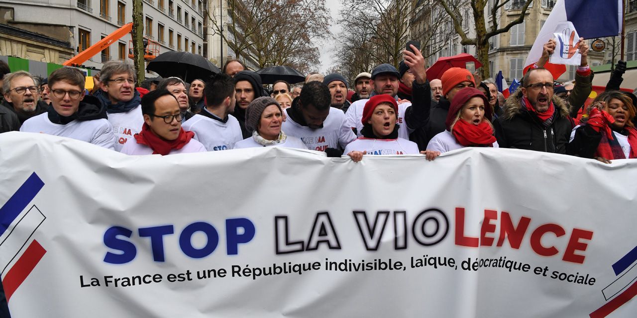 "Stop aux violences verbales ou physiques". Nombre des "foulards rouges" prévoyant de participer à la manifestation disent avoir partagé certaines revendications des "gilets jaunes", mais rejeter la violence "contre les institutions". Marie-Line, 62 ans, est venue de Saint-Maur-des-Fossés, dans le Val-de-Marne. Cette cadre infirmière dans un hôpital public, qui n'était "pas contre l'idée originale (des "gilets jaunes") de râler un peu", est "venue pour dire stop aux violences verbales ou physiques". Un petit incident tout de même : selon un journaliste du Monde , une femme qui venait de crier "Macron démission" a été giflée par une participante des "Foulards rouges". Le calme est rapidement revenu.