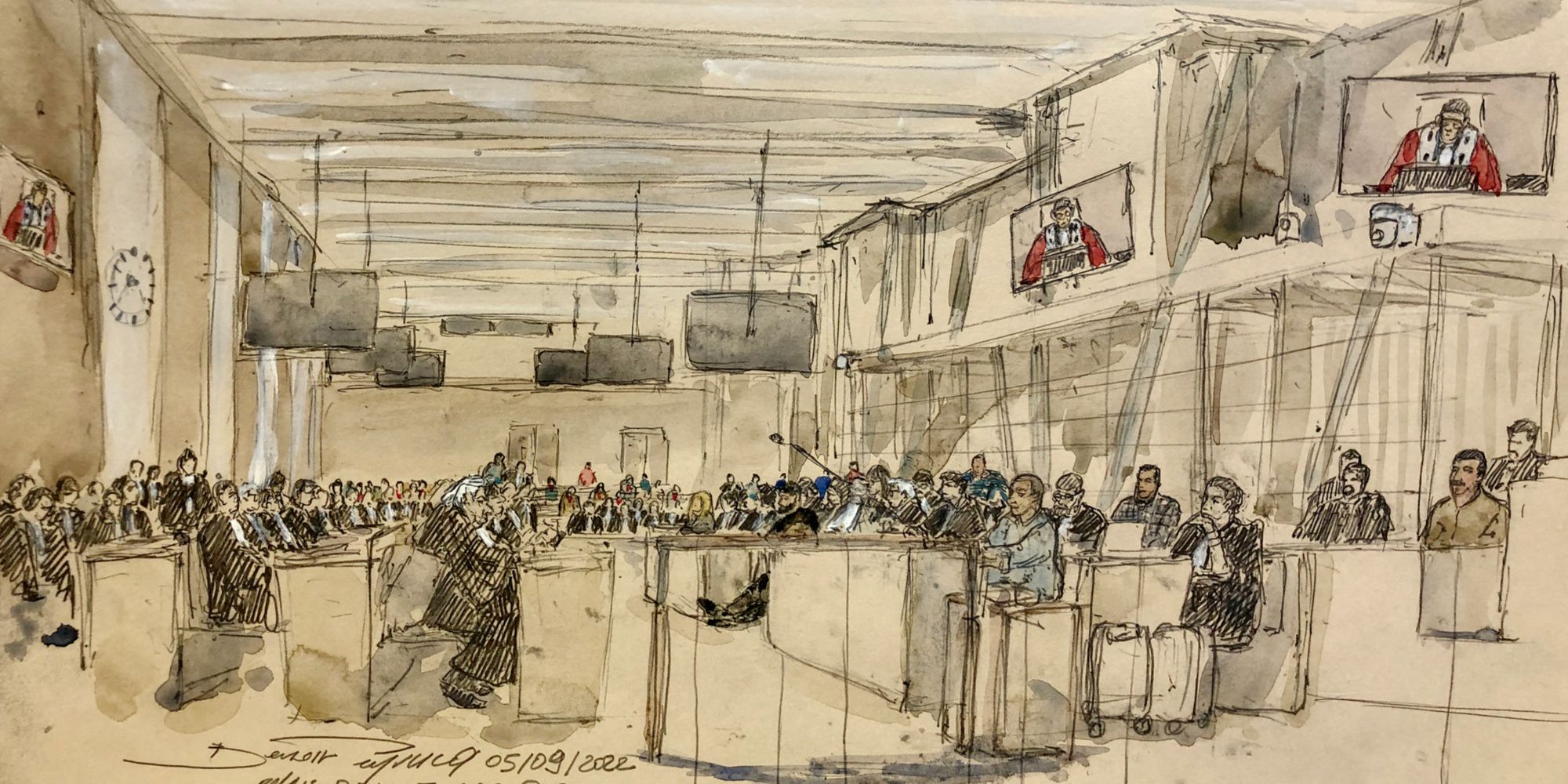 Souvent clairsemée depuis le début des débats le 5 septembre, la salle d'audience "grands procès" du Palais de justice de Paris était pour la première fois bondée mardi. Plusieurs parties civiles portaient un T-shirt sur lequel figurait un cœur composé des noms des victimes. Des applaudissements ont retenti après l'annonce de la peine infligée à Chokri Chafroud, avant le recadrage du président Raviot. "Pas de manifestations s'il vous plaît, on est dans un salle d'audience, ce n'est pas admissible. La justice a besoin de sérénité", a-t-il souligné.