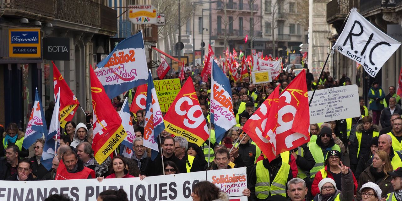 A Strasbourg, le cortège d'environ 1.500 personnes, était ouvert par plusieurs dizaines de "gilets jaunes" scandant "Gilets jaunes dans la rue et samedi on continue". Ils étaient suivis par des militants CGT brandissant une banderole réclamant une "augmentation du pouvoir d'achat, pour la défense du service public, pour l'emploi public".