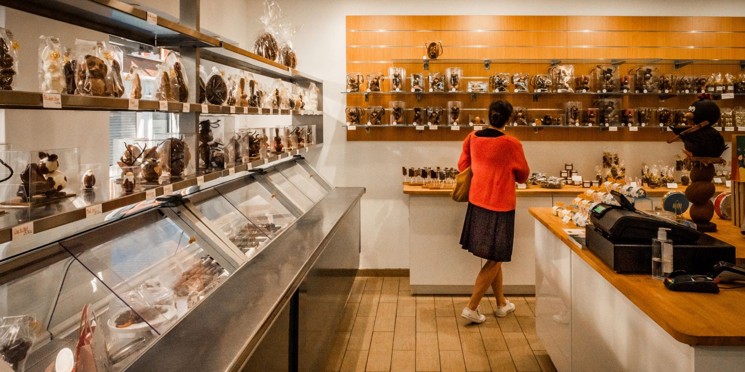 Face à l’étale centrale du magasin, Martine a les yeux qui brillent. Devant elle : des œufs, des hérissons, poissons et autres sujets en chocolat. Après un moment d'hésitation, elle partira finalement sur "une poule en chocolat", pour sa fille. Mais cette année, cette mère de famille a dû resserrer son budget : une centaine d'euros pour le chocolat, pas plus.