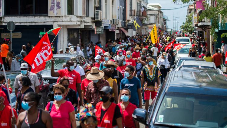 Entre 2.000 et 3.000 manifestants, selon les organisateurs, ont défilé samedi dans les rues de Pointe-à-Pitre, en Guadeloupe, à l'appel de 11 syndicats, pour protester notamment contre les licenciements annoncés par les entreprises à cause de la crise sanitaire. Masquées ou non, les manifestants ont défilé dans les rues pontoises, parfois au son des chachas (percussion caribéenne), pour exprimer leur colère. Crise sanitaire, licenciements, respect de conventions collectives, demande de titularisations, port du masque obligatoire pour les enfants à l’école dès 6 ans ou scandale de la chlordécone : cette grande marche a cristallisé de nombreux griefs exprimés depuis plusieurs semaines, voire plusieurs mois en Guadeloupe.
